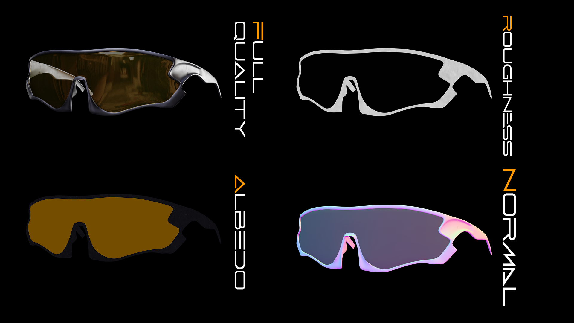 Elemento di una collezione dedicata ad accessori sportivi e tecnici. Il pacchetto include un paio di occhiali sportivi dal design avvolgente, ottimizzati per utilizzo in simulazioni e visualizzazioni 3D ad alta qualità.